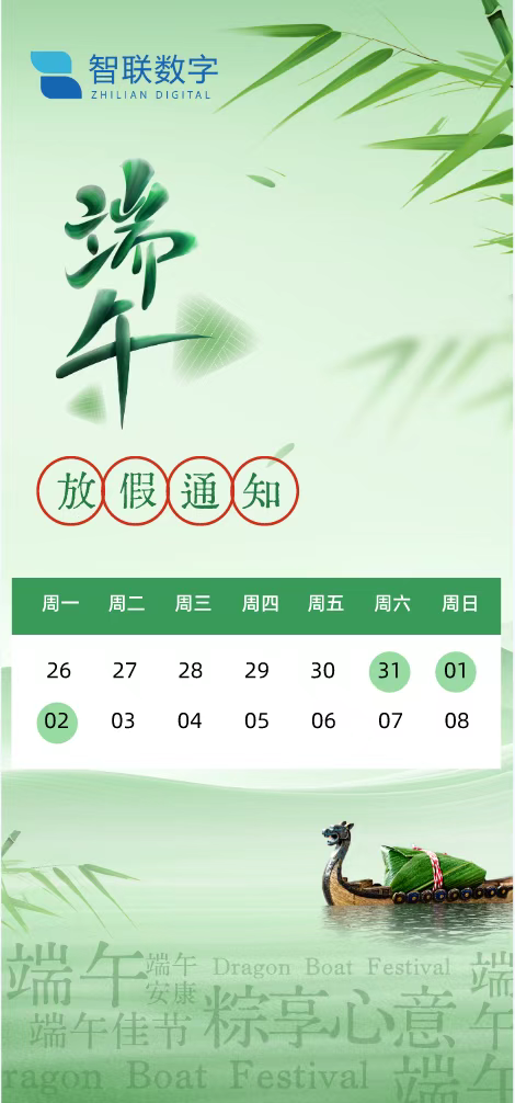 在此放假期間,如您有任何業務問題,可隨時聯系我們,我們將以更杰出的服務為您保駕護航。再次謝謝您對智聯數字一直以來的關注與支持。