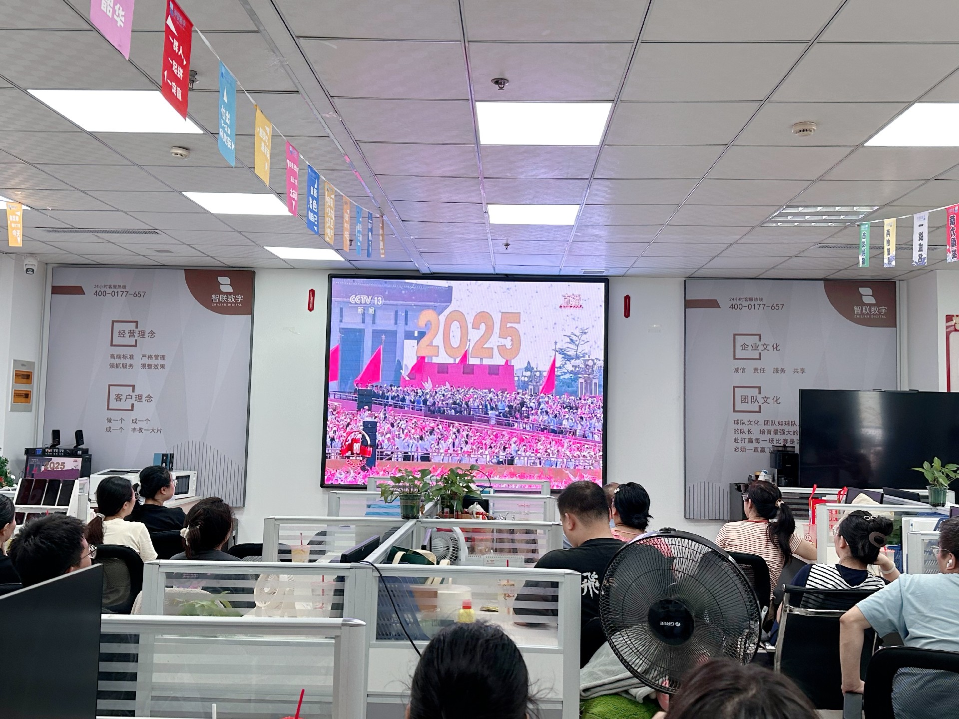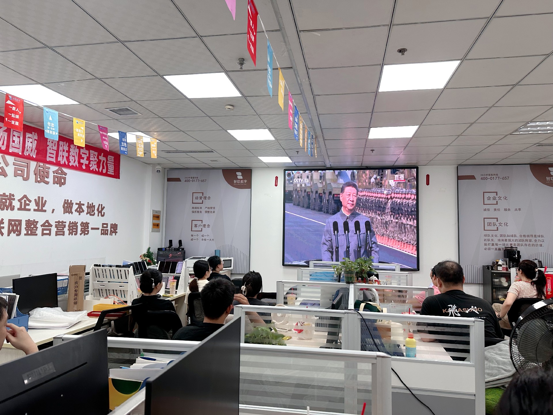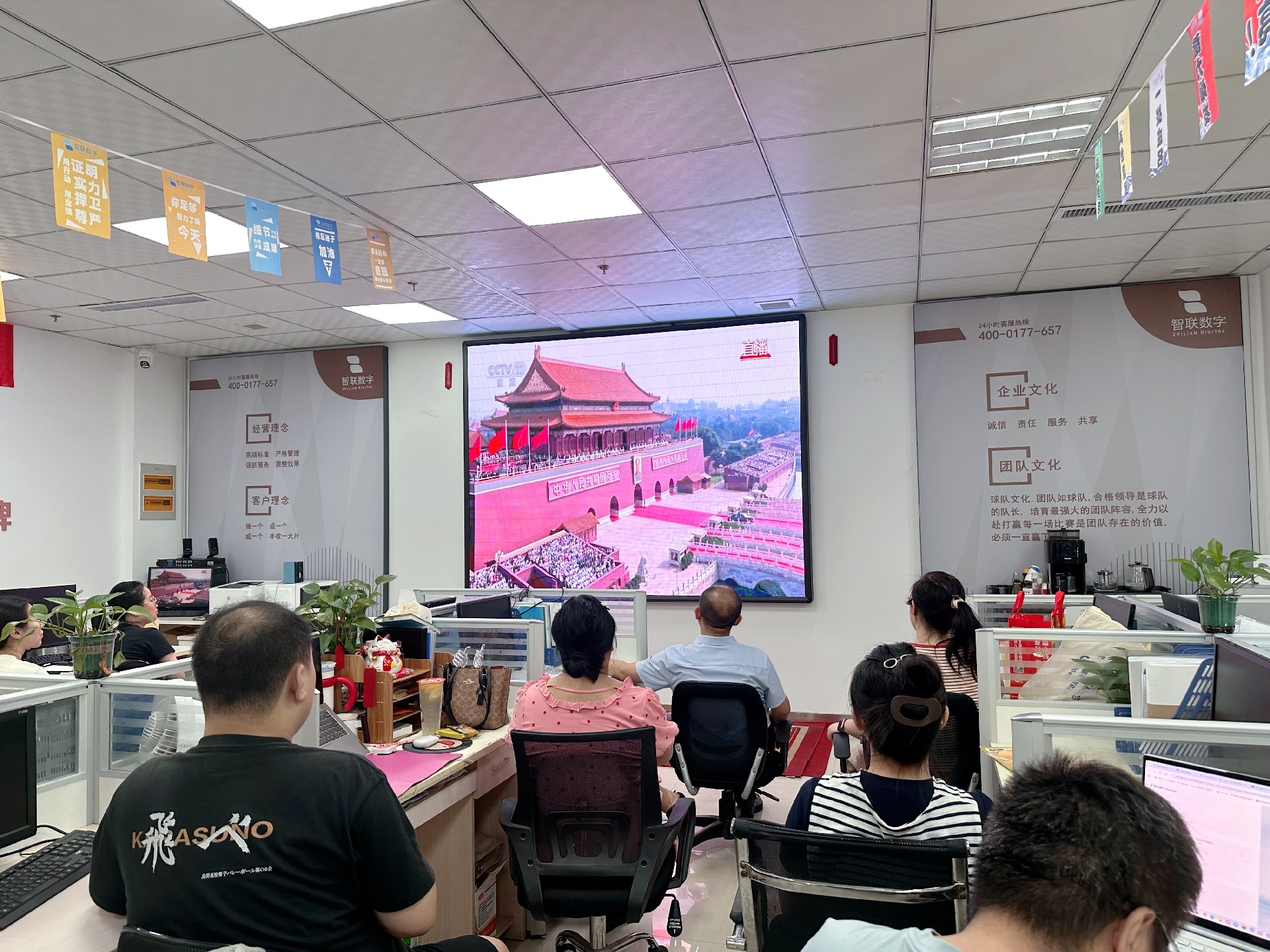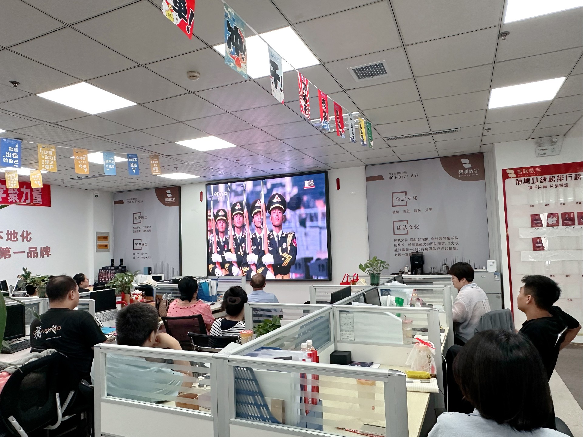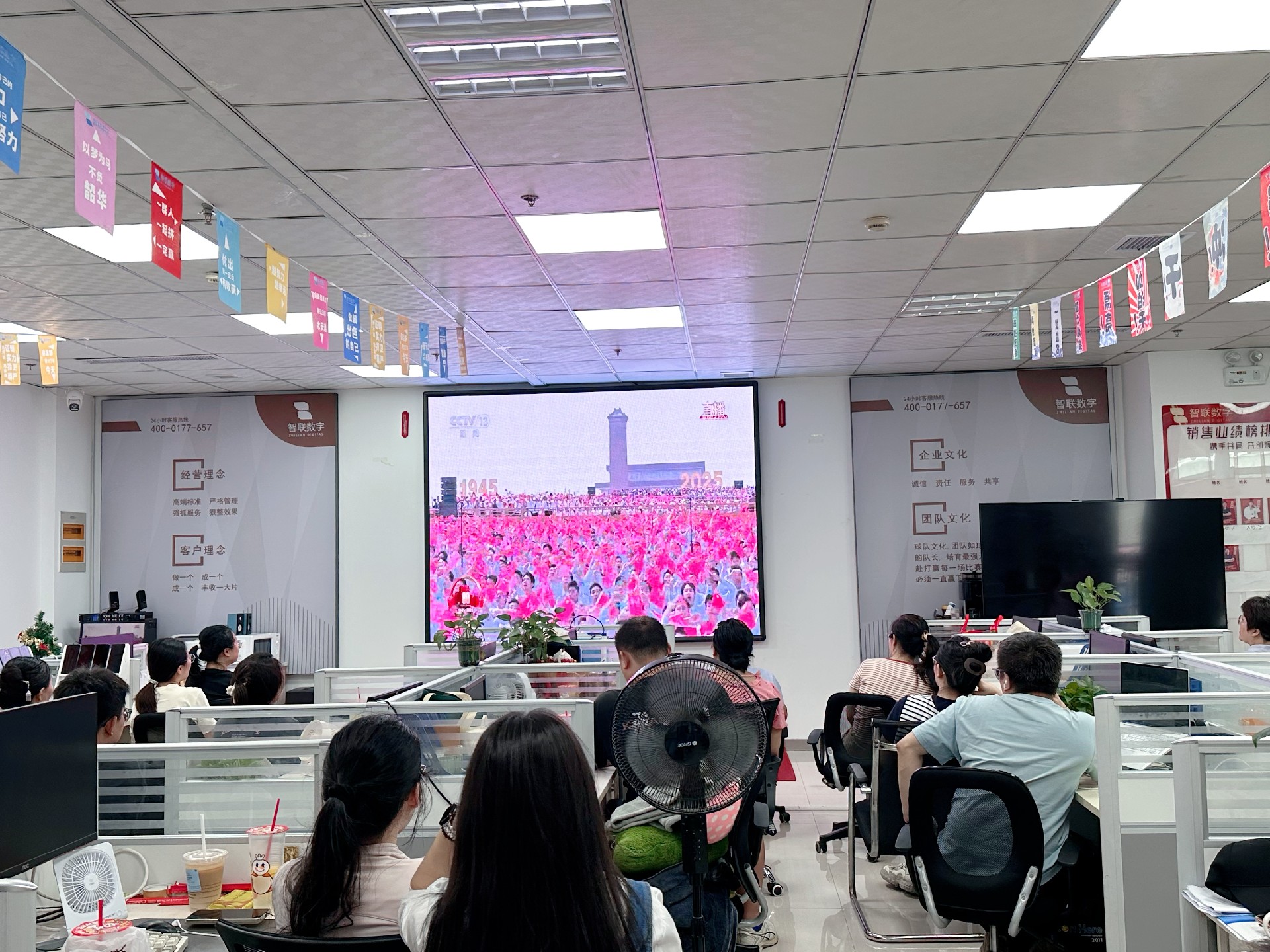 9月3日上午,紀念中國人民抗日戰爭暨 世界反法西斯戰爭勝利80周年活動在北京天安門廣場隆重舉行。智聯數字統一安排組織全體員工集中觀看實況直播,共同見證這一承載民族記憶、彰顯大國擔當的歷史時刻。