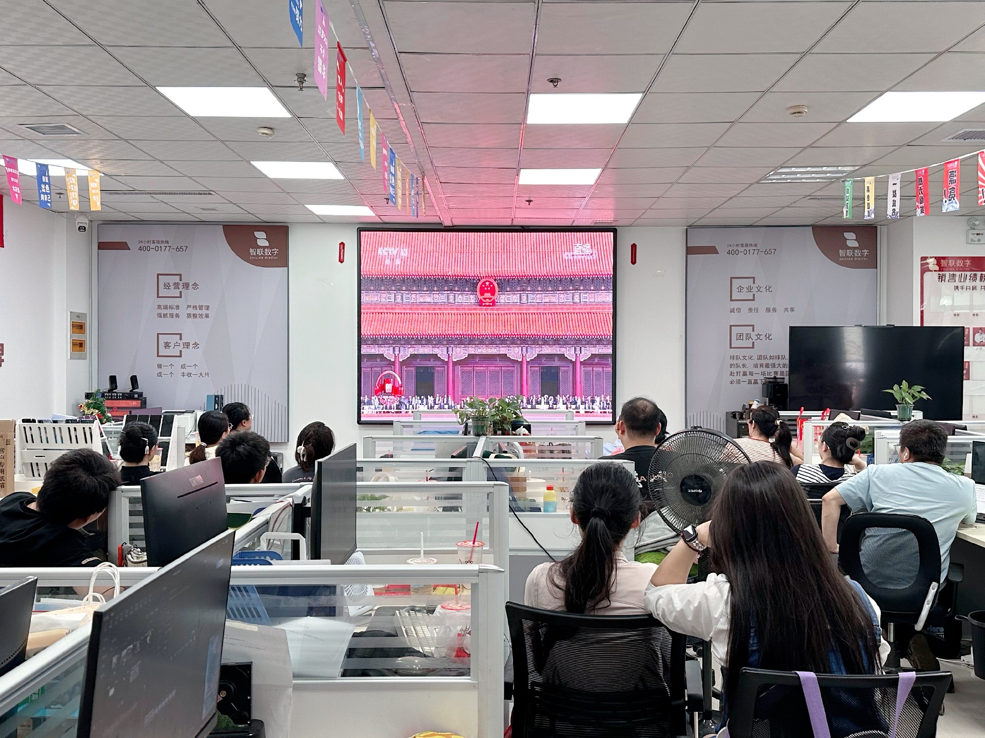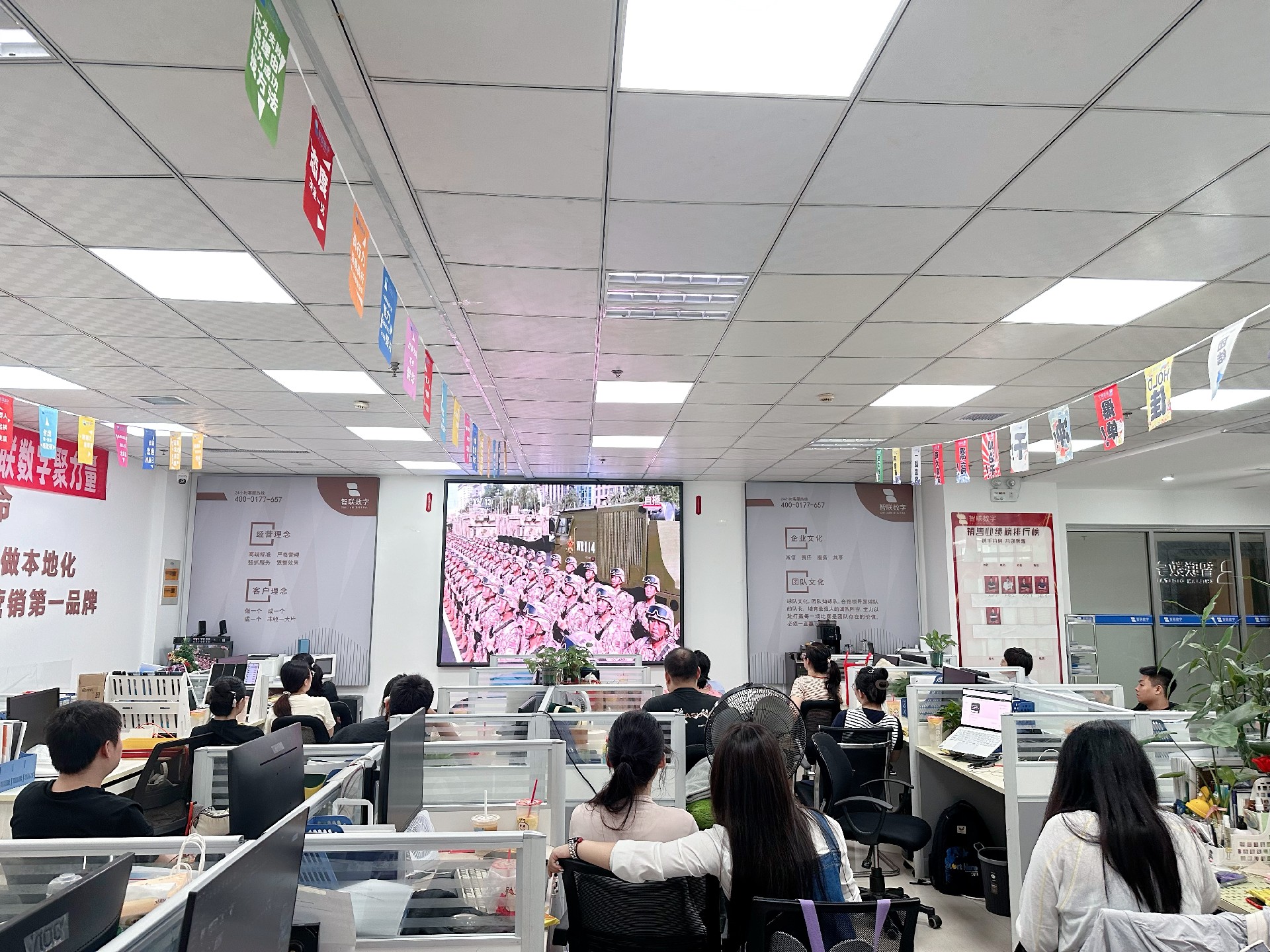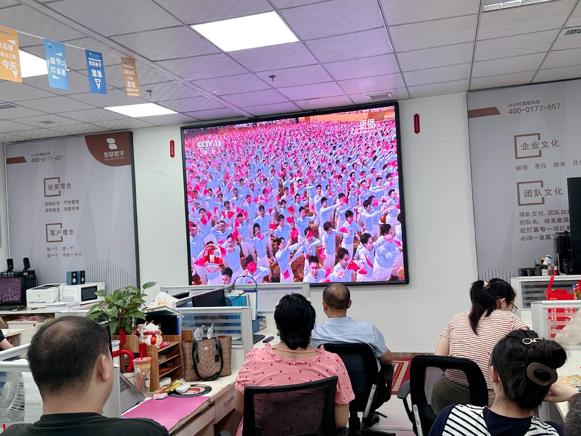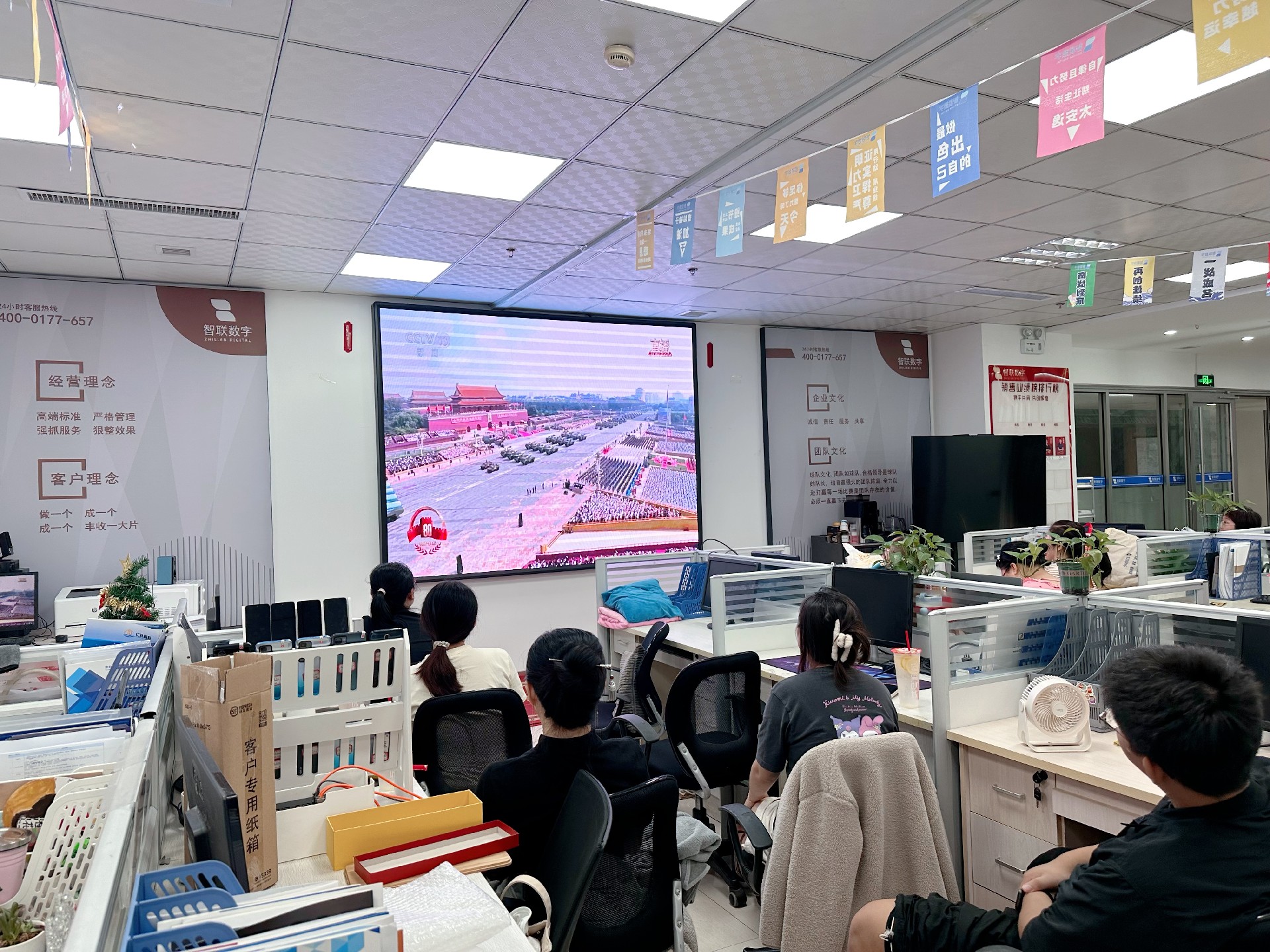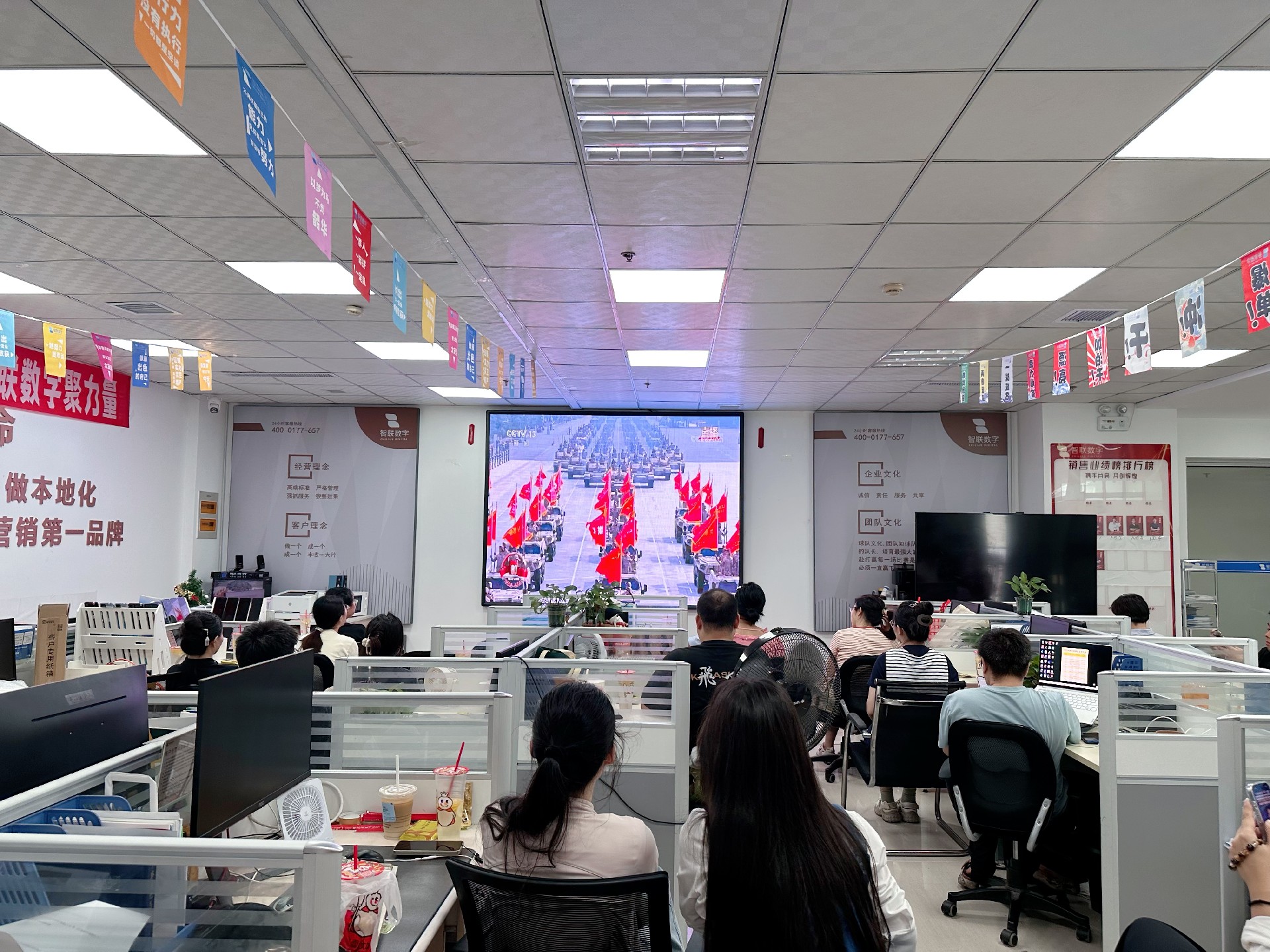 9月3日上午,紀念中國人民抗日戰爭暨 世界反法西斯戰爭勝利80周年活動在北京天安門廣場隆重舉行。智聯數字統一安排組織全體員工集中觀看實況直播,共同見證這一承載民族記憶、彰顯大國擔當的歷史時刻。